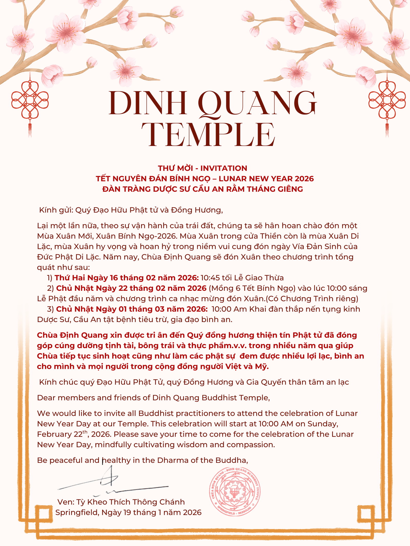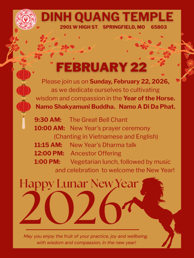 Please join us on Sunday, February 22, 2026, as we dedicate ourselves to cultivating wisdom and compassion in the Year of the Horse. Namo Shakyamuni Buddha. Namo A Di Da Phat.