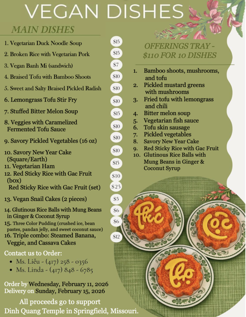 - All proceeds go to support Dinh Quang Temple in Springfield, Missouri.